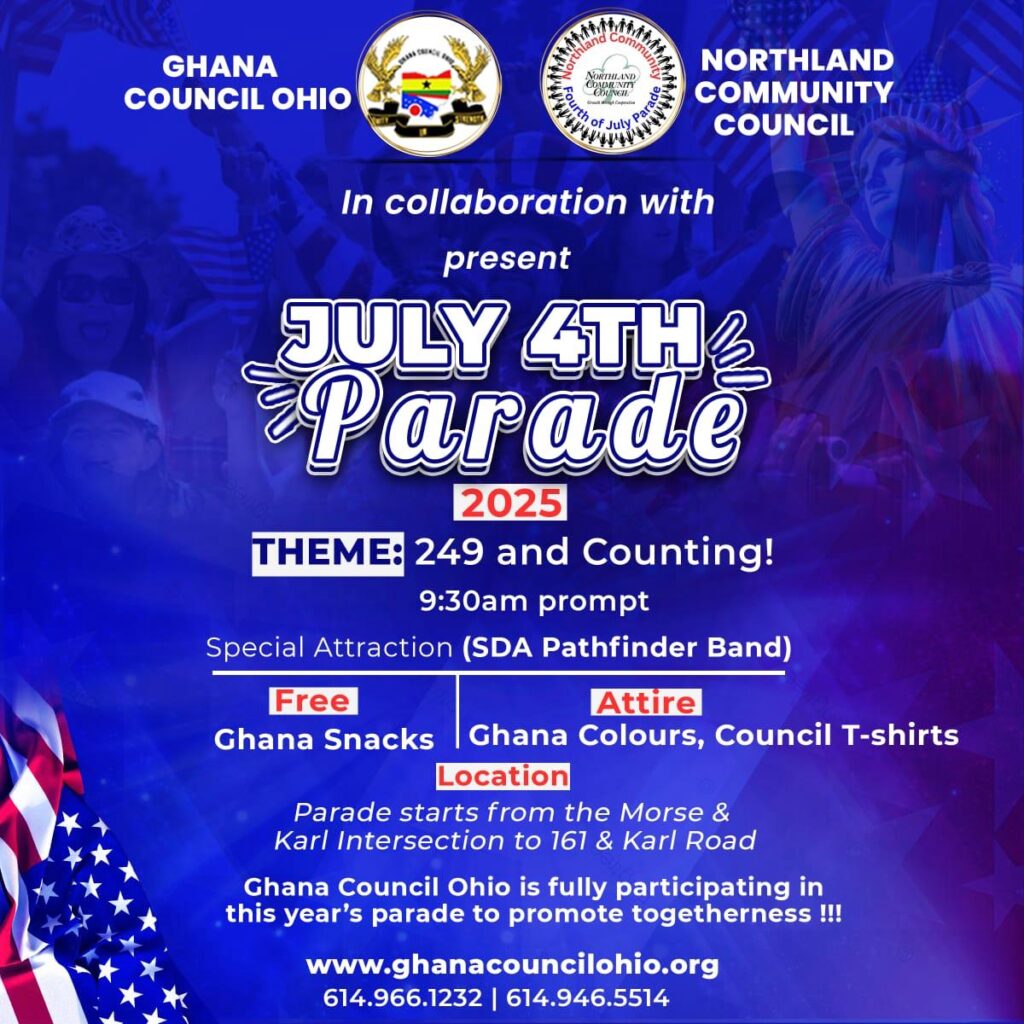 On July 4th, 2022, Ghanaians in the State of Ohio joined Northland Community Council, State and City Officials and other groups to celebrate during the annual July 4th parade. This event takes place on Karl Road in Columbus Ohio.